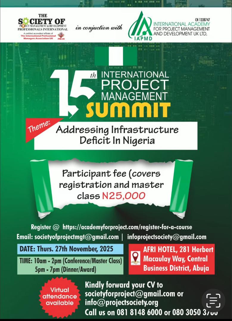 The Society of Project Management & Development Professionals International, in conjunction with the International Academy for Project Management and Development UK Ltd., will hold its 15th International Project Management Summit on November 27, 2025.