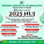 The award ceremony is scheduled for Thursday, 30th October 2025, at 3:00 PM at the NUJ Press Centre, Iwo-Ibadan Road, Osogbo.
