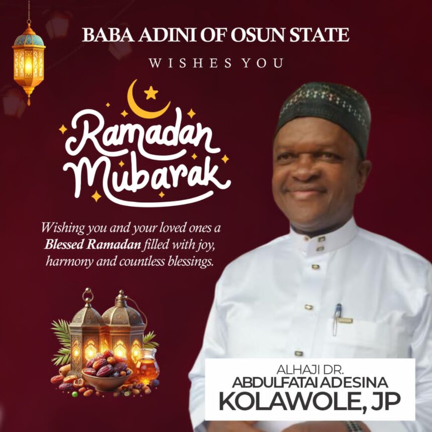 As the holy month of Ramadan begins, the Baba Adini of Osun State, Alhaji Dr. Abdulfatai Adesina Kolawole, has extended warm greetings and heartfelt wishes to Muslims across Osun State and beyond.
